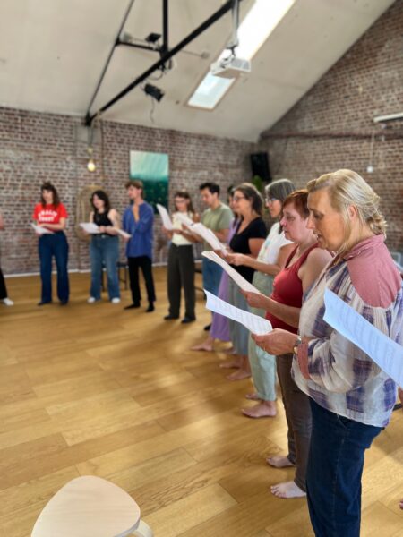 Conscience corporelle vers le travail de la voix, respiration consciente, découverte du chant polyphonique collectif.